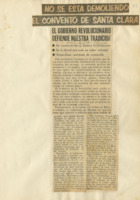 No se está demoliendo el convento de Santa Clara : el gobierno revolucionario defiende nuestra tradición…