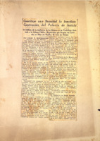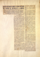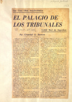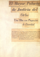 Incluye Consejo Director de la construcción del Palacio; Obras del Ministerio de Justicia. Incluye fotografías: de la galería, detalle del grupo escultórico que adorna el frontis y cuyo proyecto es de Jilma Madera; detalles de la construcción; fotografía de Fulgencio Batista; boceto del mural "Juicios Célebres" y murales alegóricos, entre ellos un boceto de Augusto Menocal; la escalinata y un balcón.