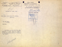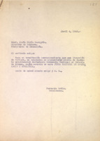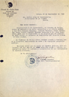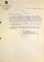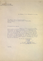 Mecanuscrito con anotaciones manuscritas. Petición al presidente de la República pidiéndole aprobar el acuerdo de la Junta Nacional de Arqueología y Etnología de declarar Monumento Nacional al Palacio de Aldama.