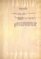 Mecanuscrito. Es una nota referente a ese artículo. Dice es un interesante estudio con numerosos grabados sobre la evolución de la arquitectura urbana desde sus primeros tiempos hasta la época del autor.