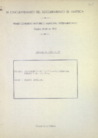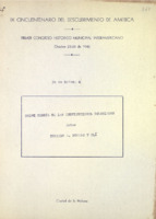 Mecanuscrito. Trabajo presentado en el Primer Congreso Histórico Municipal Interamericano, oct.23-28/1942, en el IX cincuentenario del descubrimiento de América.