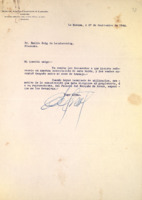 Mecanuscrito. La carta está fechada en La Habana, jul.27, 1945. En ella le remite toda la documentación relacionada con las obras de restauración de la casa del Marqués de Arcos.