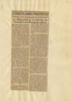 Al comentar su nombramiento como Director de Cultura del Ministerio de Educación, hace una valoración de su obra y planes, así como de la actividad cultural en el país.