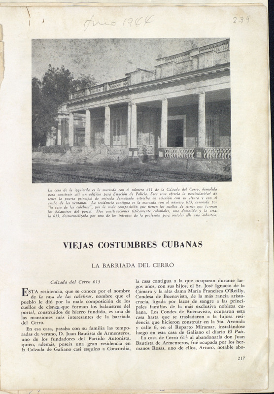 Viejas costumbres Cubanas : La Barriada del Cerro : Calzada del Cerro 613; Calzada del Cerro, 611; La casa de los Ajuria