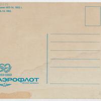 Tarjeta Postal con dibujo del avión IL-14 de la Aerolínea Soviética.