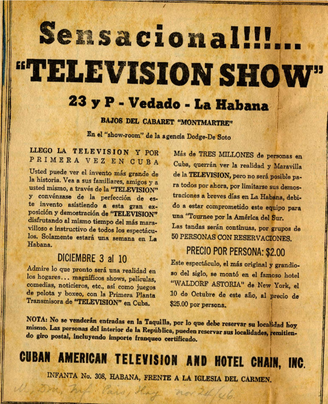 !Sensacional! "Televisión Show" … llegó la televisión y por primera vez en Cuba usted puede ver el invento…