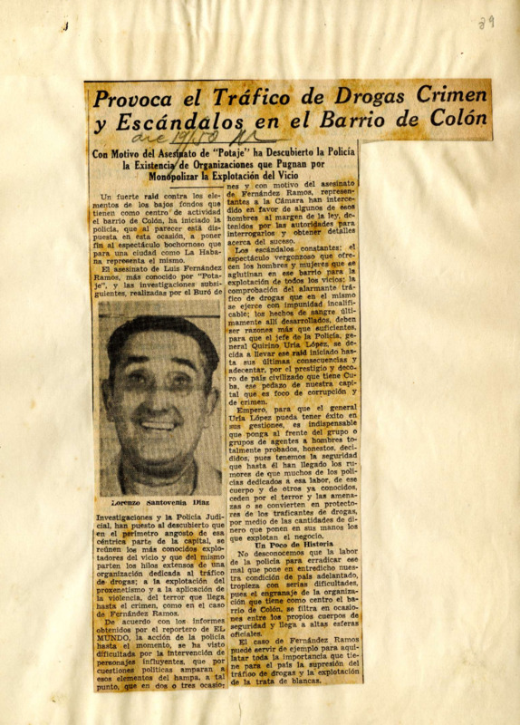 Provoca el tráfico de drogas crimen y escándalos en el barrio de Colón : con motivo del asesinato de "Potaje" ha descubierto la policía la existencia…