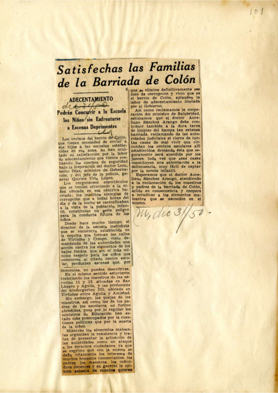 Satisfechas las familias de la barriada de Colón : adecentamiento : podrán concurrir a la escuela los niños sin enfrentarse a escenas deprimentes