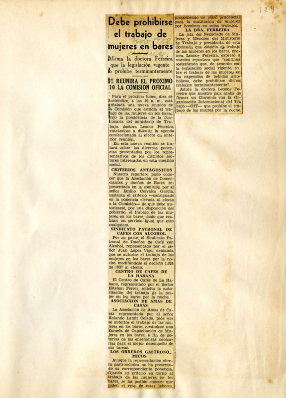 Debe prohibirse el trabajo de mujeres en bares : afirma la doctora Ferreira que la legislación vigente lo prohíbe terminantemente