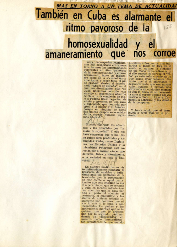 Más en torno a un tema de actualidad : también en Cuba es alarmante el ritmo pavoroso de la homosexualidad y el amaneramiento que nos corroe