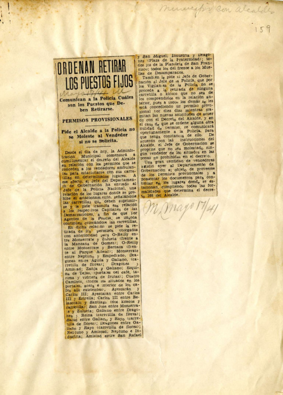 Ordenan retirar los puestos fijos : comunican a la policía cuáles son los puestos que deben reitrarse…