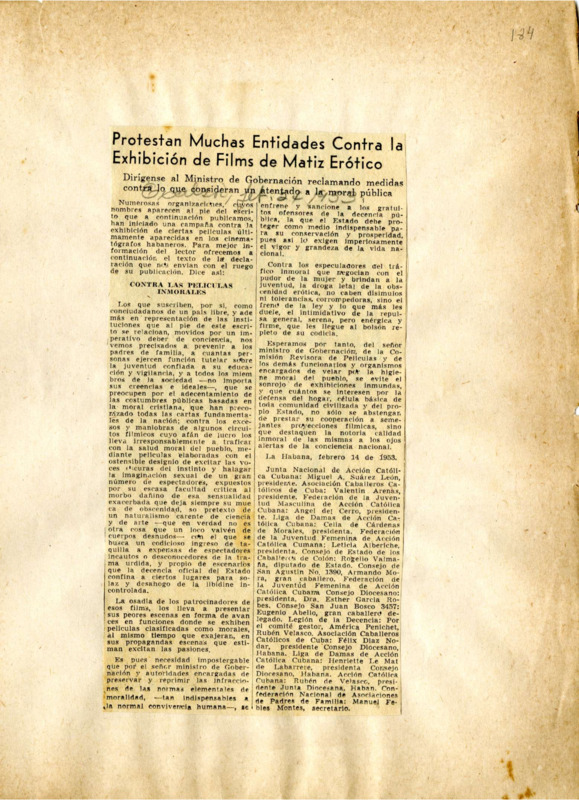 Protestan muchas entidades contra la exhibición de films de matiz erótico : diríjense al ministro de Gobernación reclamando medidas contra lo que consideran un atentado a la moral pública