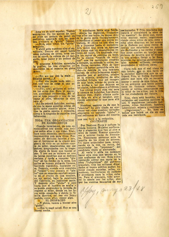 El "globo", mezcla informe de sobras, es el diario alimento de niños pobres habaneros : cinco centavos por un paquete de esas sobras : organización y reparto…