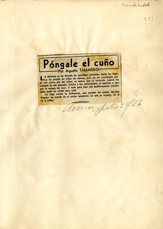 Nota manuscrita en margen superior derecho : "mendicidad"