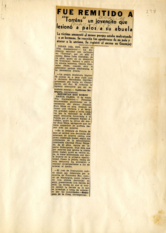 Fue remitido a "Tórrens" un jovencito que lesionó a palos a su abuela : la víctima amonestó al menor porque estaba maltratndo a su hermana…