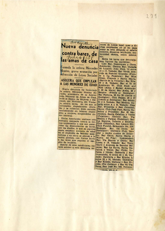 Nueva denuncia contra bares de las amas de casa : formula la sra Mercedes Montes grave acusación por infracción de leyes sociales…