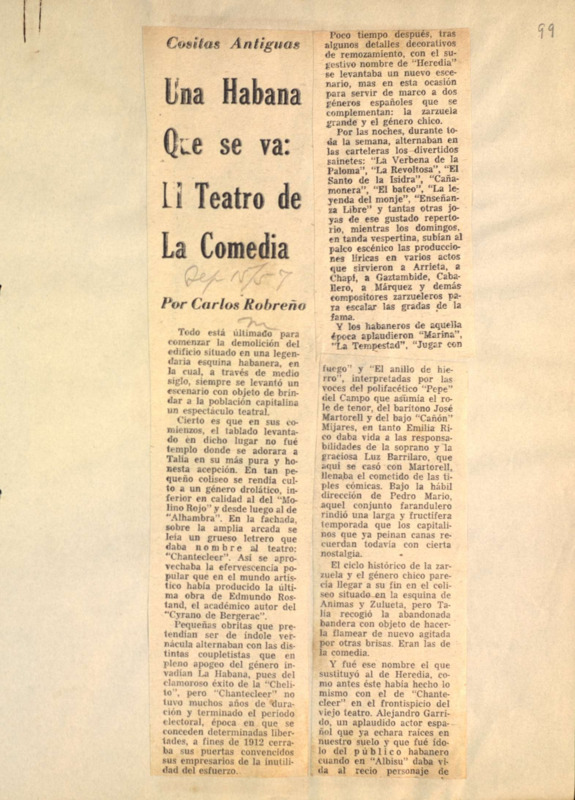Cositas antiguas : una Habana que se va : el Teatro de la Comedia