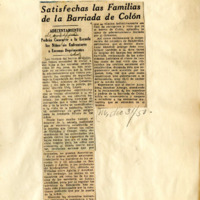 Satisfechas las familias de la barriada de Colón: adecentamiento: podrán concurrir a la escuela los niños sin enfrentarse a escenas deprimentes. Parte de documento
