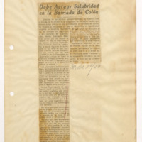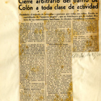 Declaraciones del ministro de Gobernación: "acabaré yo con el barrio de Colón o éste acabará conmigo": "no aceptaré sobornos ni influencias." Parte de documento
