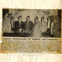 Apoyan comerciantes de Galiano una campaña. Parte de documento