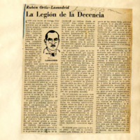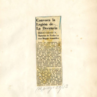 Convoca la Legión de la Decencia: quiere conocer la opinión de todos en una magna asamblea. Parte de documento