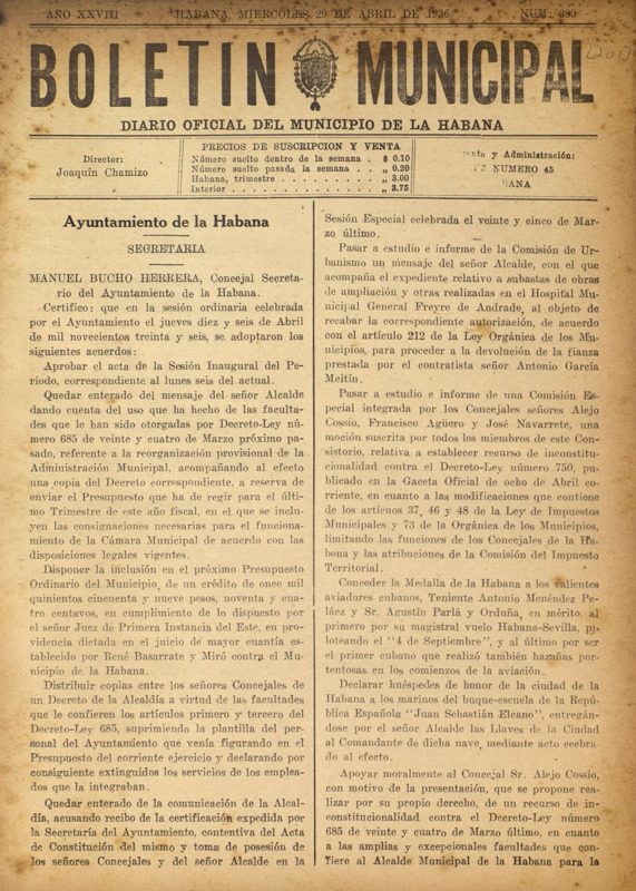 [Boletín Municipal Nos. 399-402, abril y mayo de 1936]