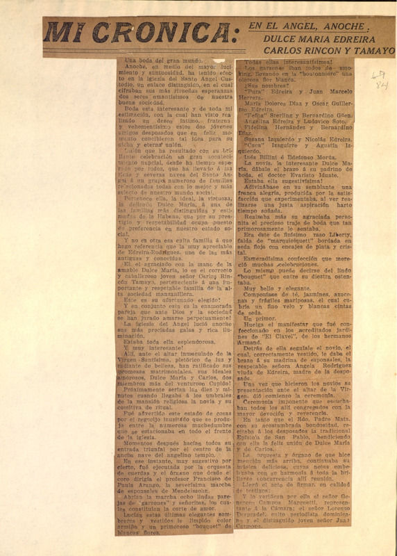 En el Ángel anoche : Dulce María Edreira; Carlos Rincón y Tamayo