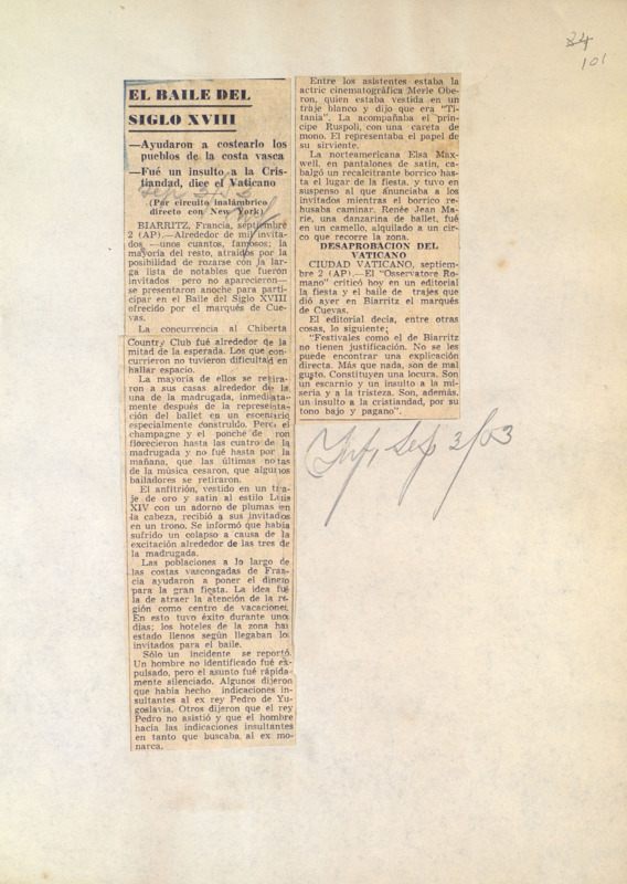 El Baile del siglo XVIII : ayudaron a costearlo los pueblos de la costa vasca : fue un insulto a la cristiandad, dice el Vaticano