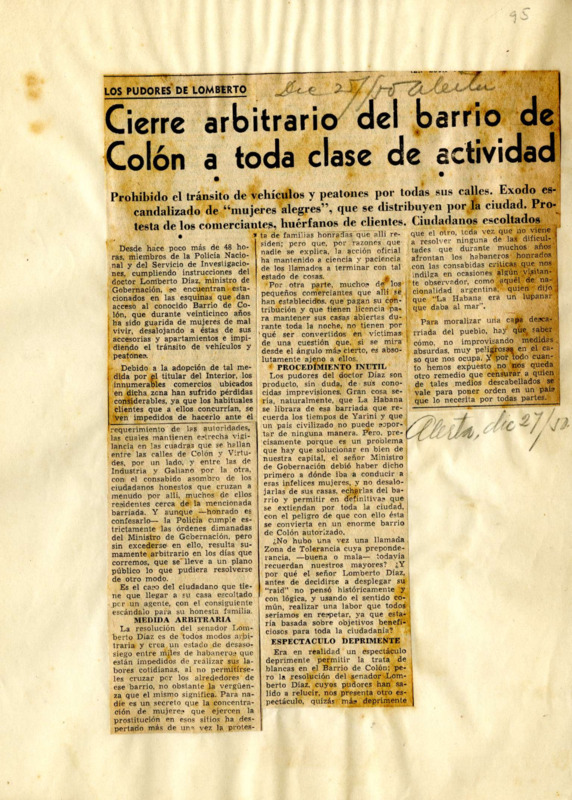 Los Pudores de Lomberto: cierre arbitrario del barrio de Colón a toda clase de actividad: prohibido el tránsito de vehículos y peatones…