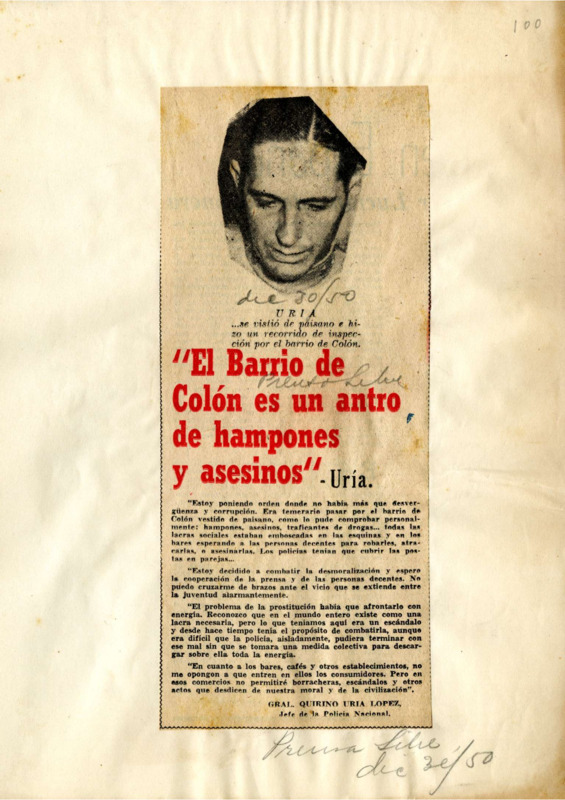 " El barrio de Colón es un antro de hampones y asesinos."