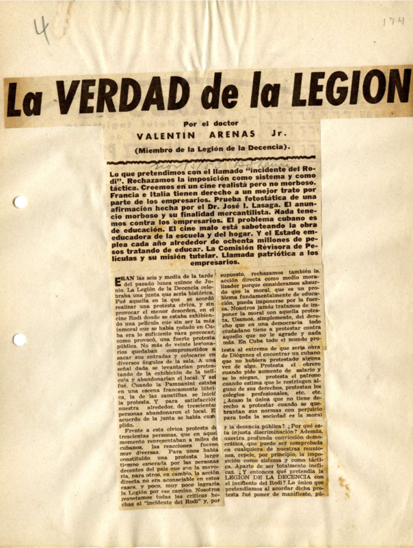 Verdad de la Legión: lo que pretendimos con el llamado incidente del "Rodi"…la comisión revisora de películas y su misión tutelar…llamada patriótica a los empresarios.
