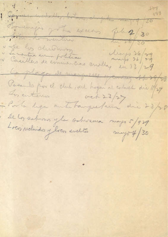Manuscrito que contiene una lista de títulos periodísticos.