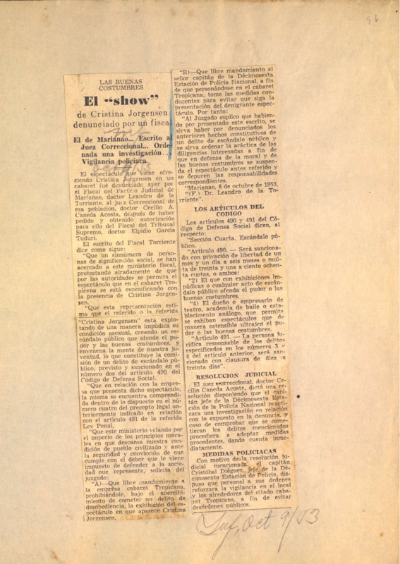 Se dirige a Hermida la legión de la decencia: pide su intervención en la exhibición de "cierto sujeto."