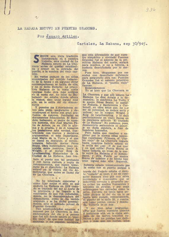 Incluye fotografía de una residencia en Puentes Grandes donde estuvo guardada la lápida que estuvo colocada en el puente, dande fe que fue terminado en 1796 y croquis, uno el más antiguo que se conoce de la Bahía de La Habana y otro del contorno de la costa de La Habana.