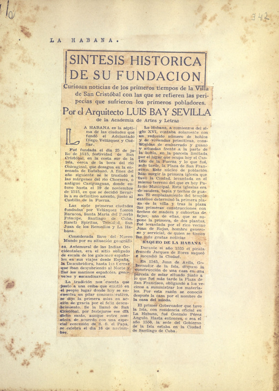 La Habana, síntesis histórica de su fundación: curiosas noticias de los tiempos de la Villa de San Cristóbal con las que se refieren las peripecias que sufrieron los primeros pobladores.