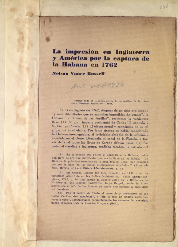 La Impresión en Inglaterra y América por la captura de La Habana en 1762.