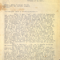 Carta enviada por W. A Socarrás desde Holguín con fecha 27 de octubre de 1920 y dirigida a Faustino Guerra, presidente del Partido Liberal en La Habana. |