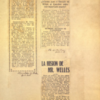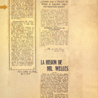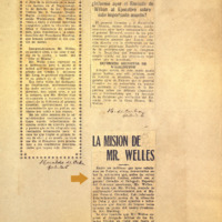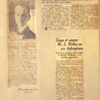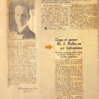 Mañana llegará Mr. B. Sumner Welles para estudiar nuestra situación político-económico. Parte de documento