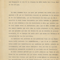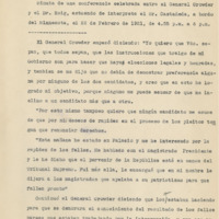 Minuta de una entrevista celebrada entre el Gral Crowder y el Dr. Roig actuando de intérprete el Sr. Castañeda, a bordo del "Minnesota" el 21 de febrero del 21 desde las 9.00 a.m hasta las 12.p.m. Parte de documento