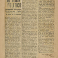 Copia de una carta del Sr. Gastón Rabel, principal accionista del Central Washington, persona que no hace política, dirigida a manuel gregorio González, candidato liberal a al alcaldía de Sto Domingo, Santa Clara. Parte de documento