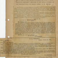 Minuta de una entrevista celebrada entre el Gral Crowder y el Dr. Roig actuando de intérprete el Sr. Castañeda, a bordo del "Minnesota" el 22 de febrero del 21 de 4.55 p.m a 6.p.m.. Parte de documento