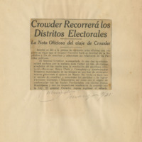Gobierno del presidente Mario García Menocal I : Segundo período (20 mayo 1917–20 mayo 1921) : actuación del general Enoch H. Crowder en las elecciones complementarias de 15 de marzo de 1921.