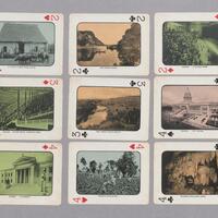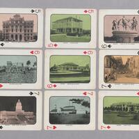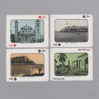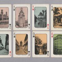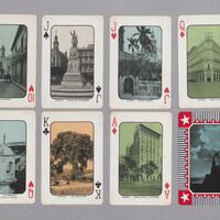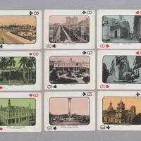 Baraja de 52 cartas y 1 joker, estilo francés con numeración y símbolos en dos de sus ángulos, en cada carta vista de un sitio de la Isla en el período republicano. Esta fue realizada aproximadamente en 1932. Joker: Vista de una típica plaza.
