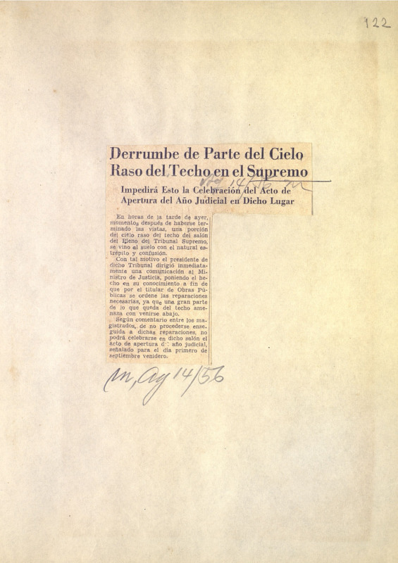 Derrumbe de parte del cielo raso del techo en el Supremo: impedirá esto la celebración del acto de apertura del año judicial en dicho lugar.