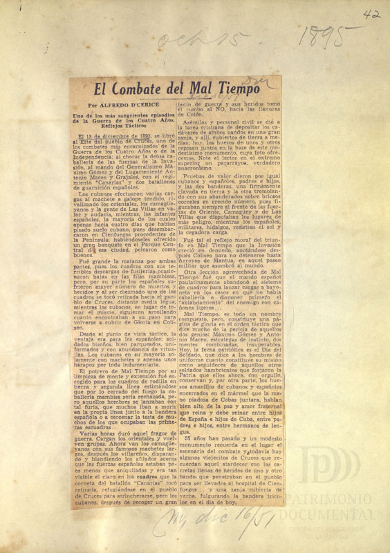 El Combate del Mal Tiempo: uno de los más sangrientos episodios de la guerra de los cuatro años: reflejos tácticos.