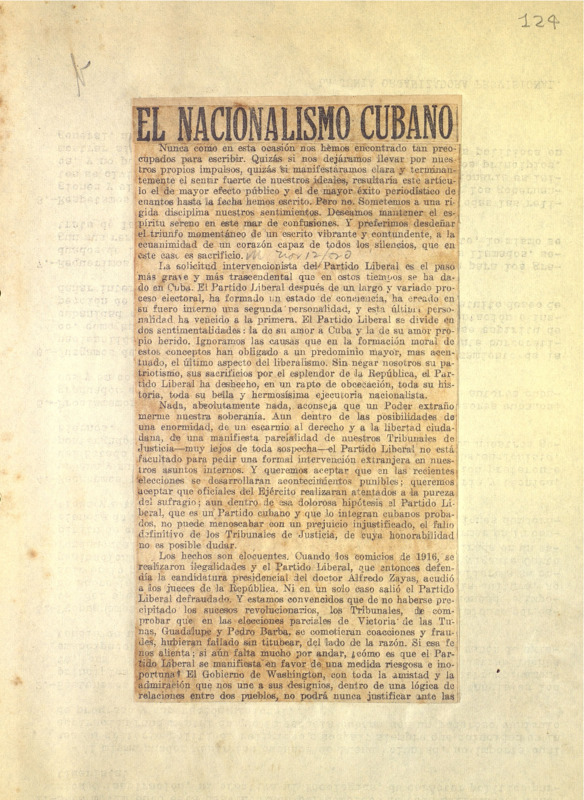 Comenta la solicitud del Partido Liberal al gobierno norteamericano para que intervenga en el proceso electoral cubano.