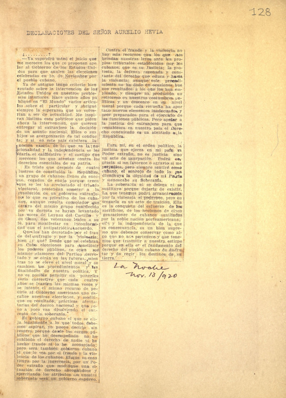 Valoración negativa de la solicitud realizada por el Partido Liberal al gobierno americano para que intervenga en el proceso electoral cubano.
