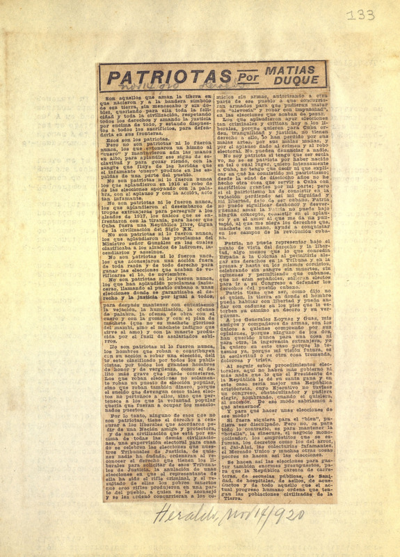 A propósito del llamamiento al patriotismo cubano realizado por el general Manuel Alfonso, presidente interino del Consejo Nacional de Veteranos de la Independencia, el autor hace un recuento de diversos momentos en la historia del país en los que se ha utilizado a conveniencia el término "patriotas" aprobando ante la situación política actual, la intervención americana en las elecciones.