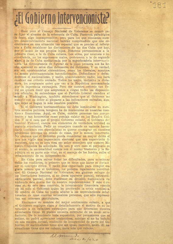 A propósito de la misión del asesor financiero norteamericano solicitado por el Gobierno cubano, el autor realiza una valoración desfavorable de esta solicitud.