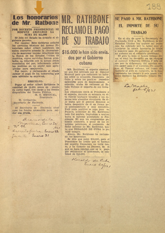 Breve reseña del decreto presidencial que establece se le pague al asesor financiero americano Albert Rathbone la cantidad de 15. 000 pesos.